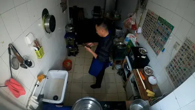 他在厨房做饭,孩子们会进来问,今天吃什么。