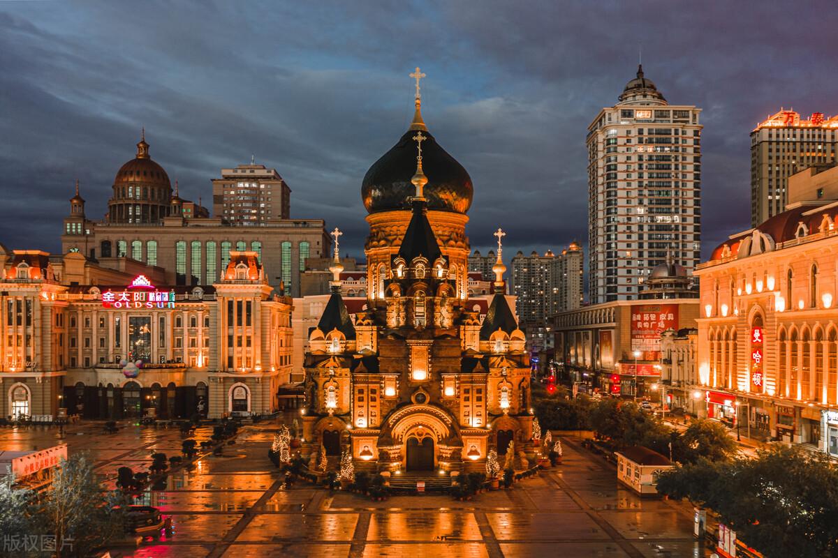 圣索菲亚大教堂是哈尔滨的著名地标,也是中国目前保存最完整的拜占庭式建筑。可以在外面拍照打卡,也可以进入内部参观(需要购买门票),绿色的洋葱头式大穹顶十分醒目,满满的异域风情。