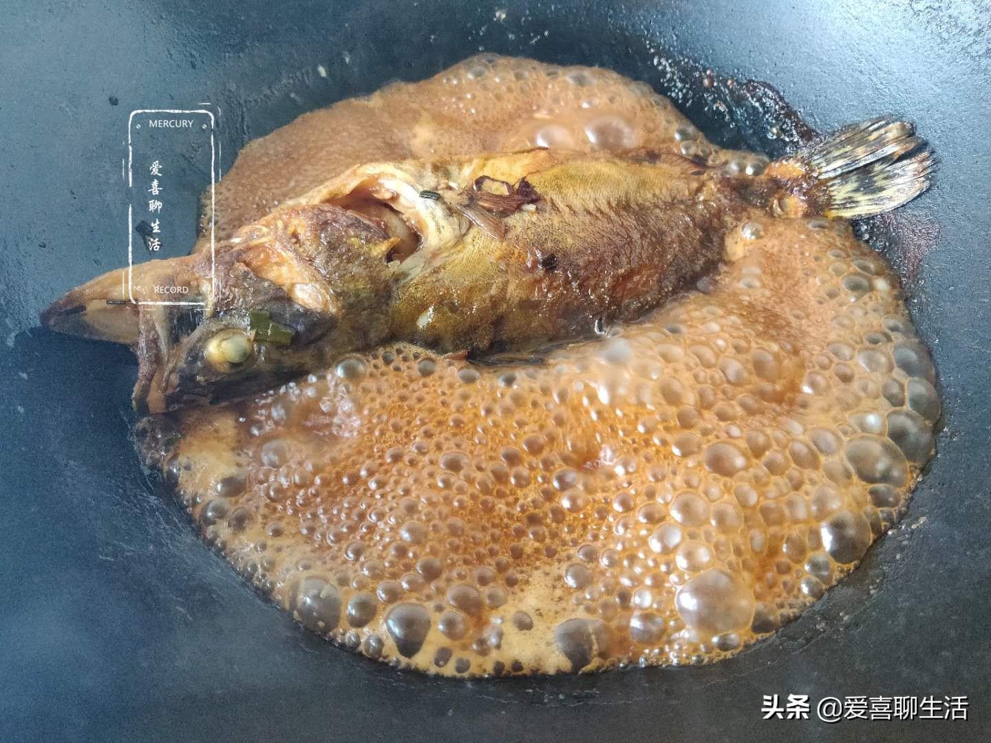 第三步 翻面,鱼放入锅中后不要急着去动它,晃动锅底,轻轻推动鱼身,鱼能动了,再翻面。