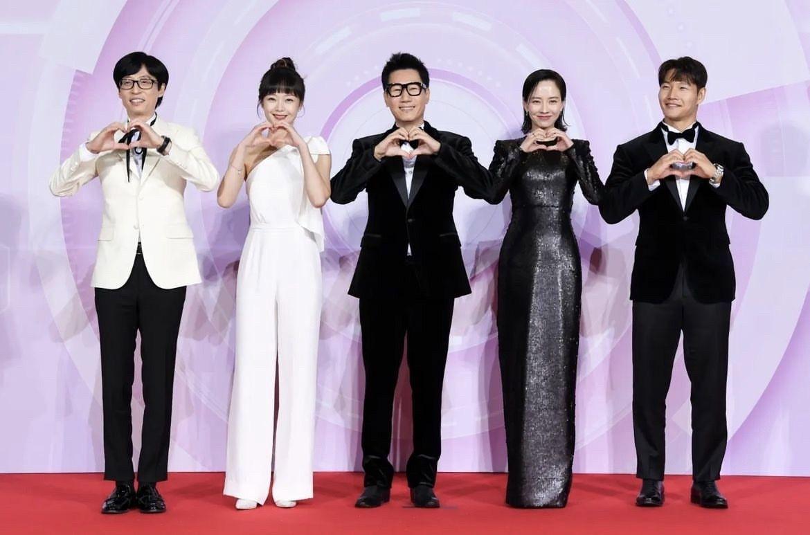 宋智孝紧身亮片裙超「腰瘦」,与金钟国红毯对看「小互动」甜甜的